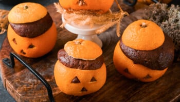 Estas mandarinas de Halloween en forma de bizcocho son muy fáciles de hacer porque van rellenas de un bizcocho de chocolate al microondas. Mira cómo se hacen y triunfa en esta noche de miedo: