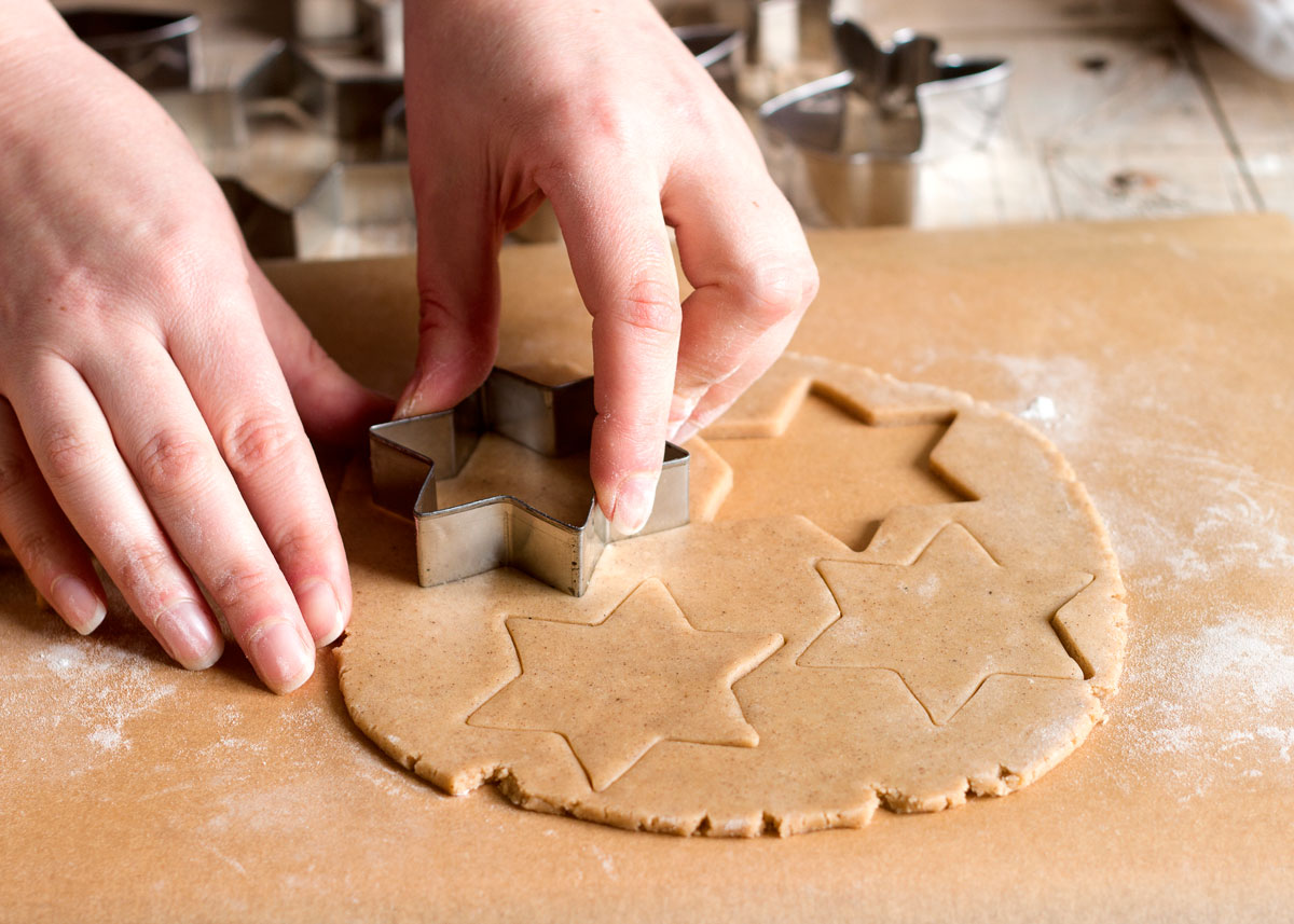 - Con los cortantes en forma de estrellas como éstos, de varios tamaños cortar las estrellas de galletas y hornearlas en horno precalentado a 180º hasta que estén cocidas.