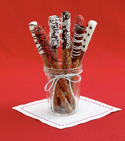 Unos palitos de pretzel bañados en chocolate, coco rallado o fideos de colores pueden ser unas estupendas golosinas navideñas… ¿Qué te parece si las envuelves y se las ofreces a los más pequeños como regalo?…
