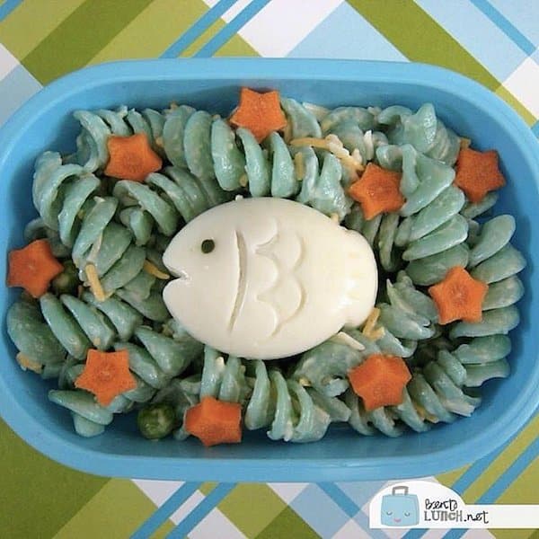 Si el menú del día es pasta, podéis darle un toque divertido agregando algunas estrellitas cortadas en verdura y un pececillo tallado en un babybel, esos quesitos pequeños redondos. De esta manera, con muy poco, podréis recrear un paisaje marino para los peques.