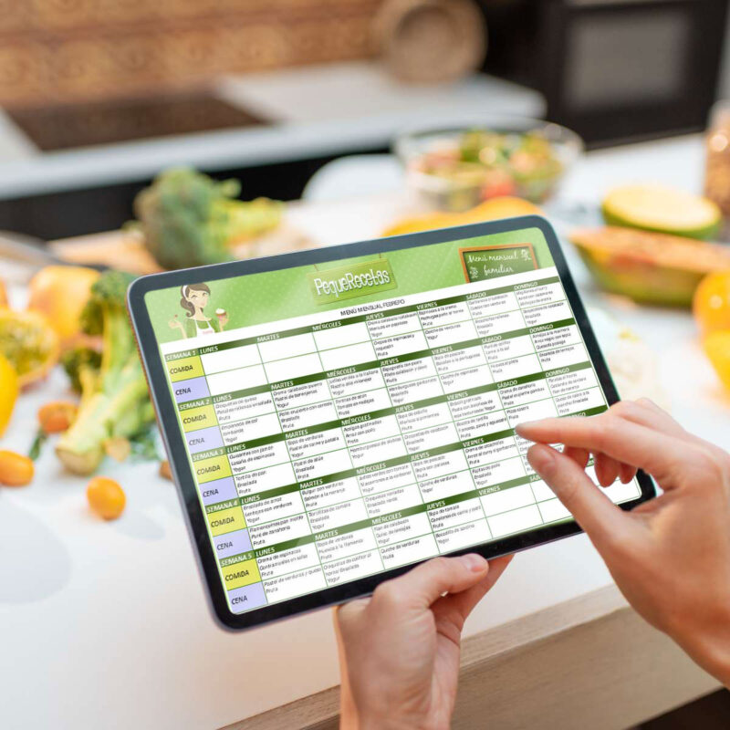 - Haz un menú semanal: Incluye desayunos, comidas, cenas y tentempiés. Nuestros menús descargables te pueden ayudar a planificar y adaptarlos a tu familia.