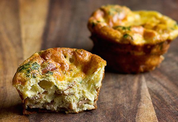 Casi cualquier tortilla que preparéis en casa se puede hacer al horno en los moldes de magdalena, previamente aceitados. Eso sí, tiene que quedar bien cocida para que no se desarme al desmoldarla. También podemos hacer una sencilla tortilla francesa, agregándole virutas de jamón, queso, perejil picado, etc.