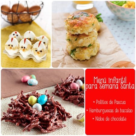 Ver las recetas de pollitos de Pascua, hamburguesas de bacalao y nidos de chocolate.