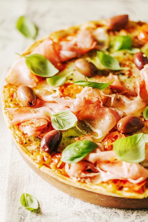 Preparación: Ponemos la harina en un bol con la sal y hacemos un pozo en el centro. Disolvemos la levadura en un poco de agua tibia, la echamos en el pozo junto con el aceite y comenzamos a amasar, añadiendo de a poco más agua tibia hasta tener una masa suave y homogénea. Cubrimos con un paño y dejamos que la masa crezca aproximadamente 1 hora. Volvemos a amasar unos segundos, separamos dos bollos y estiramos. Ponemos en una bandeja de horno aceitada, por encima los ingredientes que nos gusten (por ejemplo tomate frito y queso mozzarella) y llevamos al horno precalentado a 250°C calor arriba y abajo, por unos 7 minutos. El tiempo depende de vuestro horno, tiene que quedar dorada por debajo y el queso bien fundido encima.