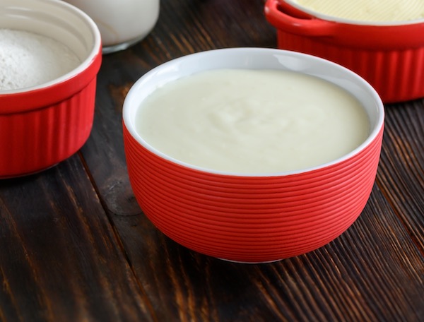Ingredientes: 800 ml de leche; 90 g de maicena; sal; nuez moscada