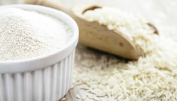 La harina de arroz se puede hacer en casa simplemente triturando los granos de arroz con un robot de cocina, un molinillo de café o un vaso americano (licuadora).