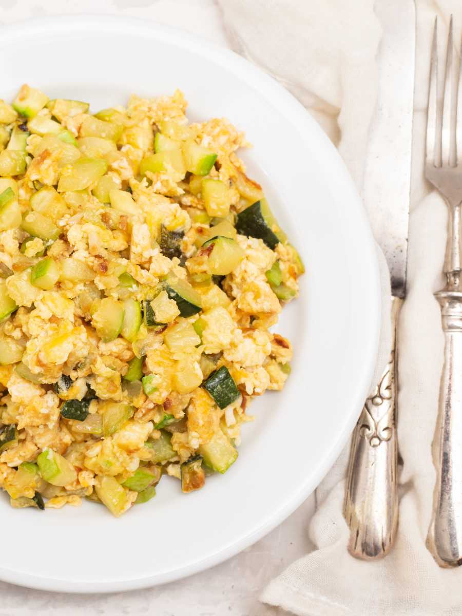 - ¡Sirve caliente y disfruta de tu delicioso revuelto de calabacín!