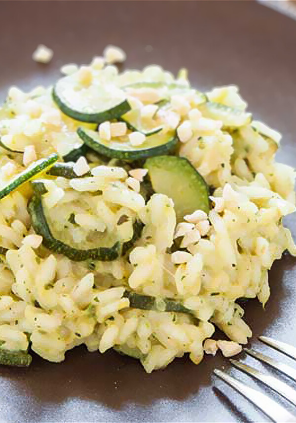 Hemos visto una receta de risotto de gambas básica, pero en Italia también es común preparar el “risotto gamberetti e zucchine” es decir con calabacín, que se ralla o se pica pequeño y se sofríe junto a la cebolla.