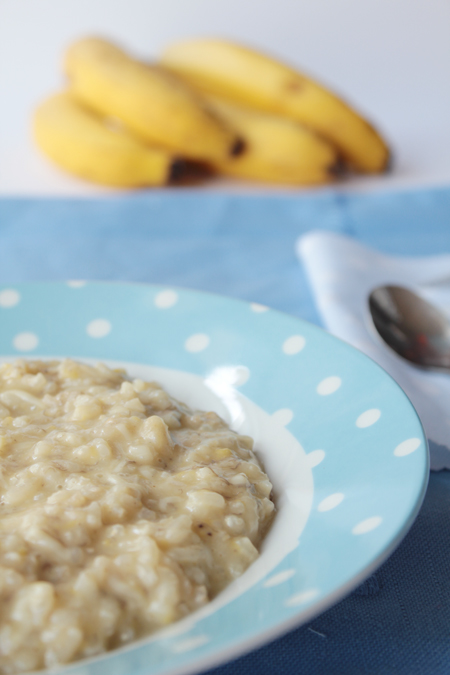 Hoy os proponemos una receta para los más peques, un risotto de plátano. El risotto italiano es un arroz cremoso y suave ideal para esos peques que están en la transición de los purés y la comida entera, aunque después de haberlo probado me atrevo a decir que hagáis un poco más porque está riquísimo.