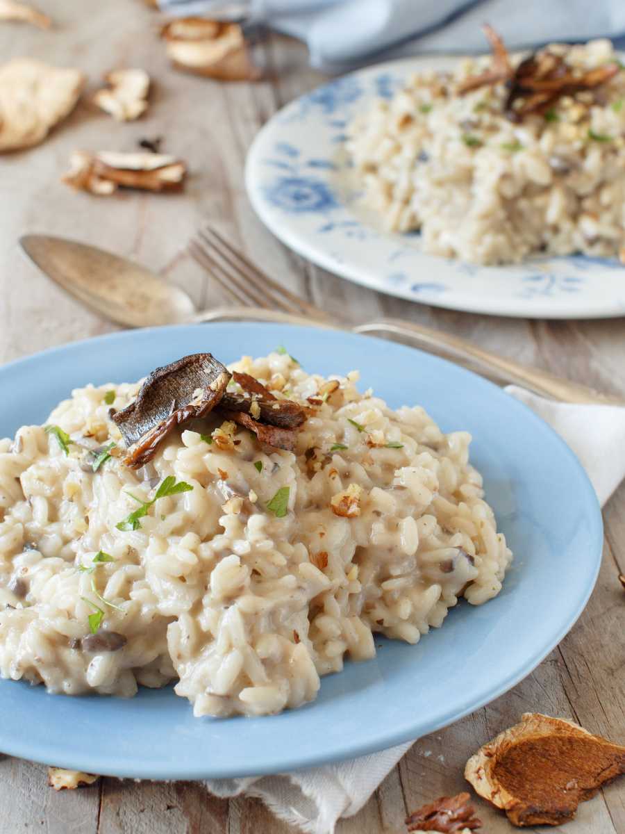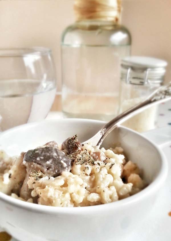 Habitualmente el risotto con setas, un plato típico del norte de Italia, que se elabora con funghi porcini (puedes comprar en tiendas especializadas o comprar online aquí). Si tenéis oportunidad de conseguir este tipo de setas típicas de Italia os lo recomendamos porque su sabor es inconfundible. En caso contrario podéis elaborar el risotto con setas de las que encontramos habitualmente, como las setas ostra o cualquier otra que os guste, que aunque son más suaves le darán también un gusto exquisito a este arroz.