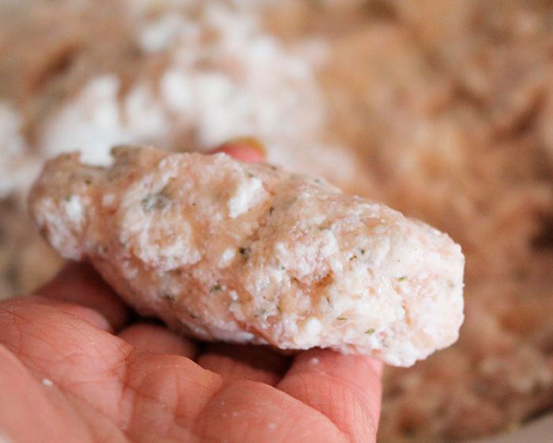 - Cogemos una porción de la mezcla a la que damos forma de croqueta.
