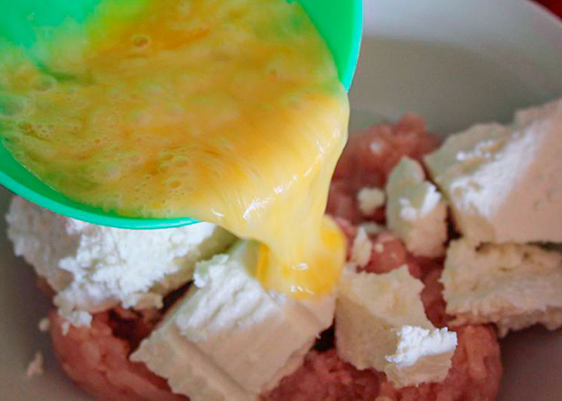 - En un cuenco o recipiente ponemos la carne de pollo picada, el requesón, el huevo batido y el queso rallado, una pizca de sal y pimienta negra a vuestro gusto.