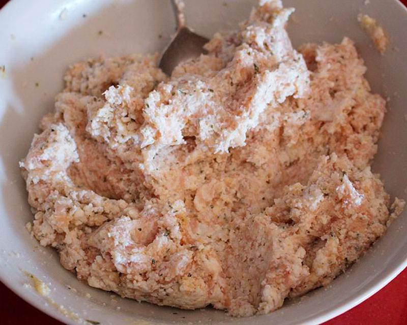 Para preparar estos rollitos vamos a utilizar carne de pollo picada (a mí me han picado la pechuga en la carnicería) y la vamos a mezclar con requesón. Luego vamos a envolver esta mezcla con una loncha de jamón serrano que sellaremos y luego cocinaremos con un poco de vino blanco y romero, ¿a qué suena bien?