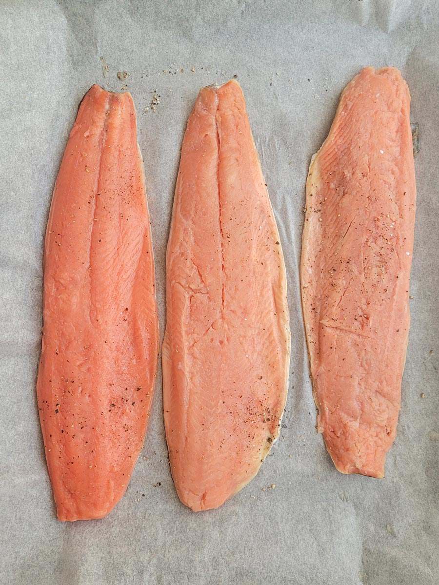 - 3 filetes de salmón salvaje (aproximadamente 200 g cada uno)