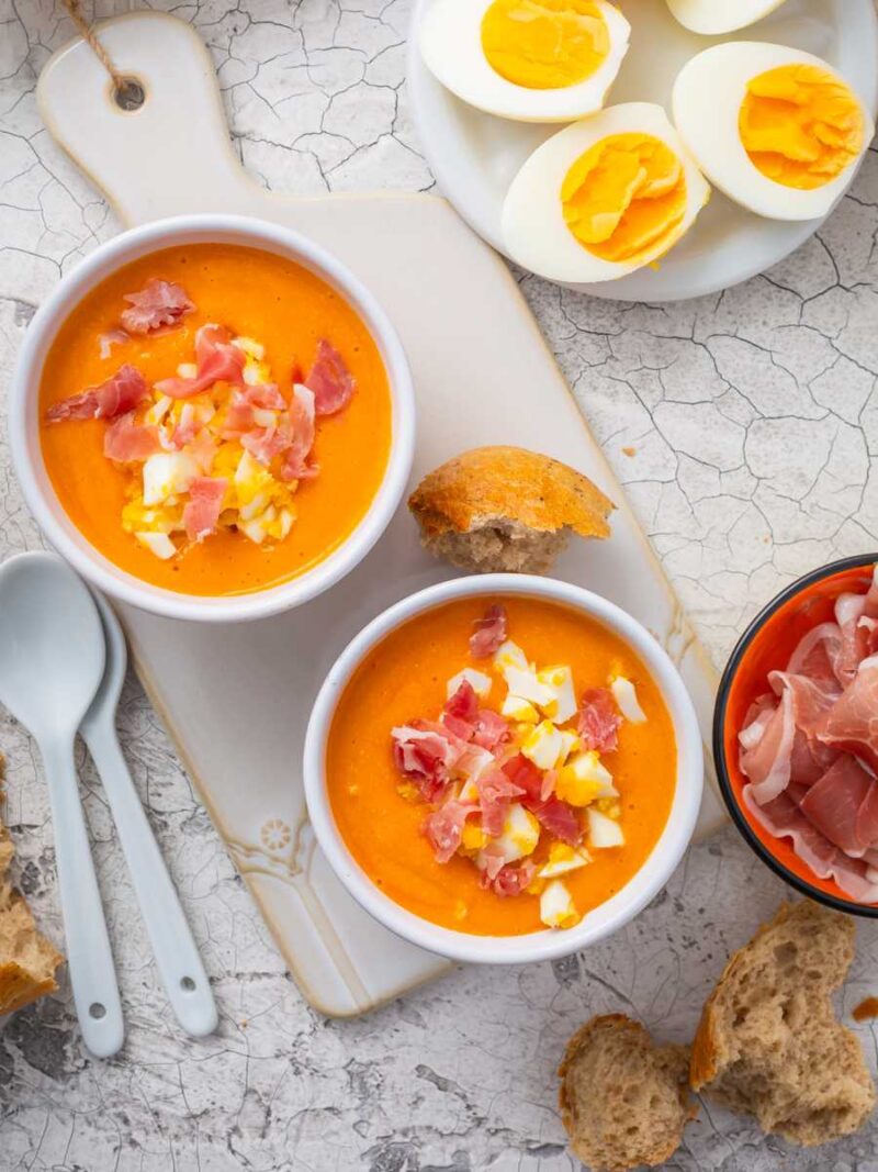 El salmorejo cordobés, como el gazpacho andaluz, es sinónimo de verano en España, no puede faltar. Y hacer salmorejo con Thermomix es tan fácil que lo tendrás listo en 10 minutos, solo tendrás que luego dejarlo enfriar en la nevera porque, cómo no, un buen salmorejo tiene que estar bien, pero bien frío.