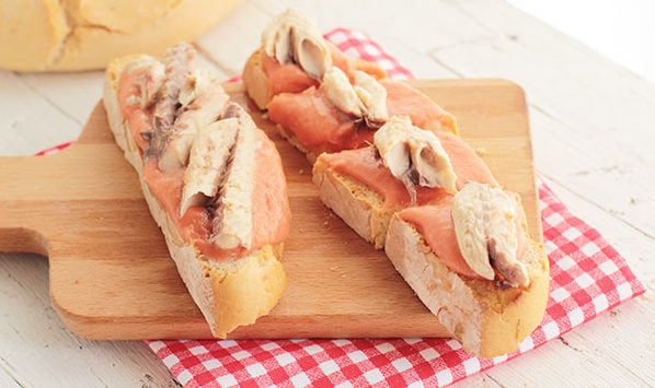- Abrimos las latas de filetes de caballa y disponemos los filetes enteros sobre el salpicón.