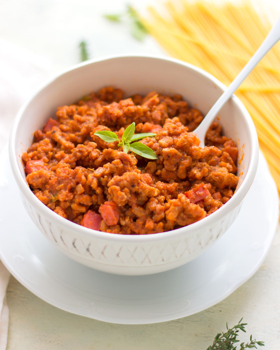 - Sabor extra con vino tinto: Si quieres un toque más sofisticado, sustituye el vino blanco por vino tinto para una salsa boloñesa con un sabor más profundo.