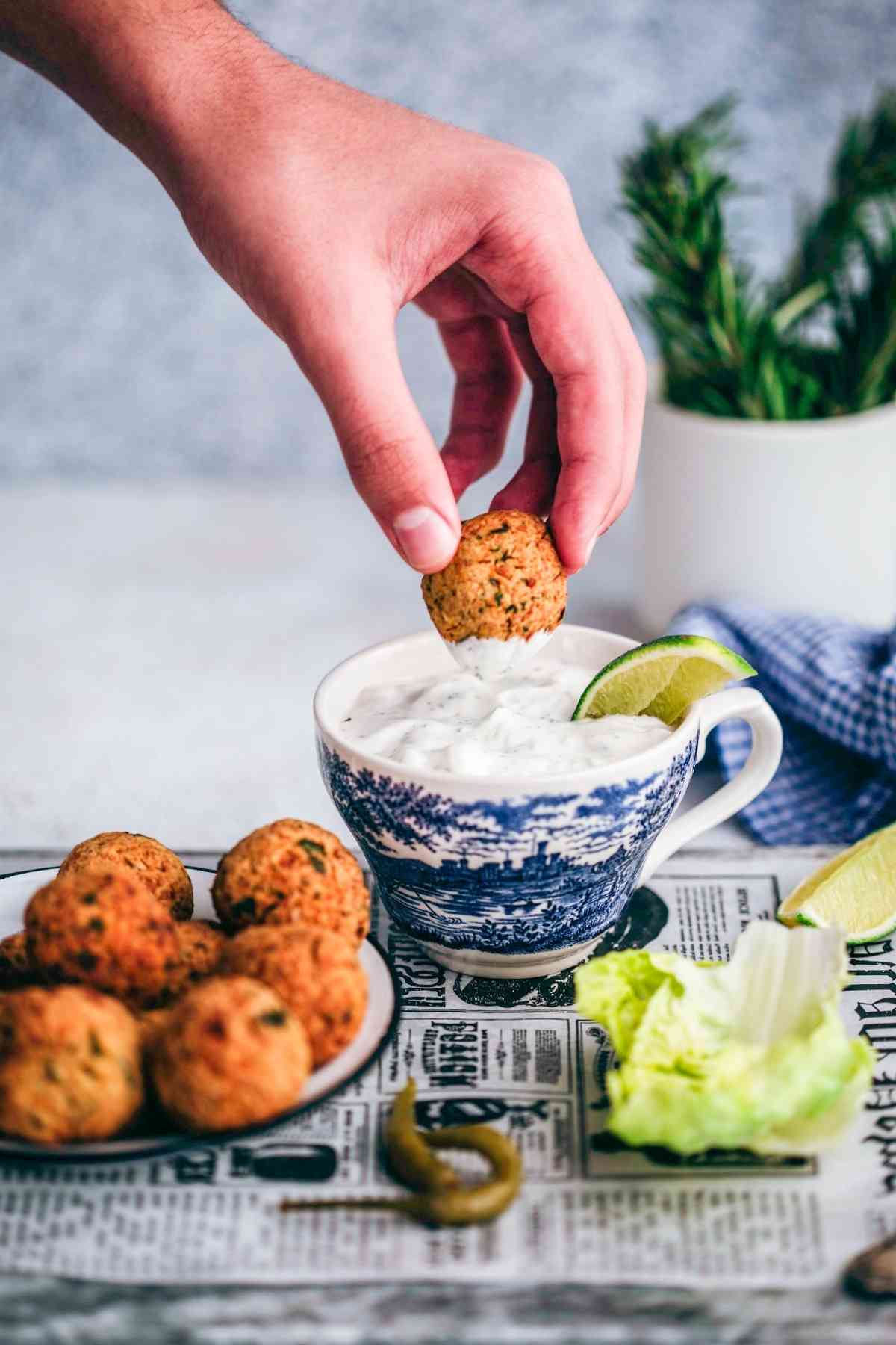 Disfruta de esta salsa de yogur y menta con tus falafel caseros, para los que te dejamos la receta paso a paso: