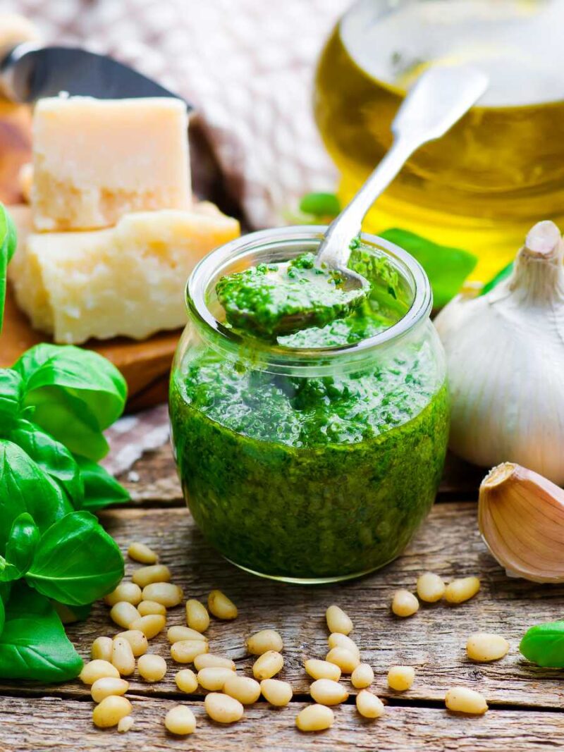 - Consérvala bien: Si haces pesto en grandes cantidades, guárdalo en un frasco con una capa de aceite por encima para que no se oxide.