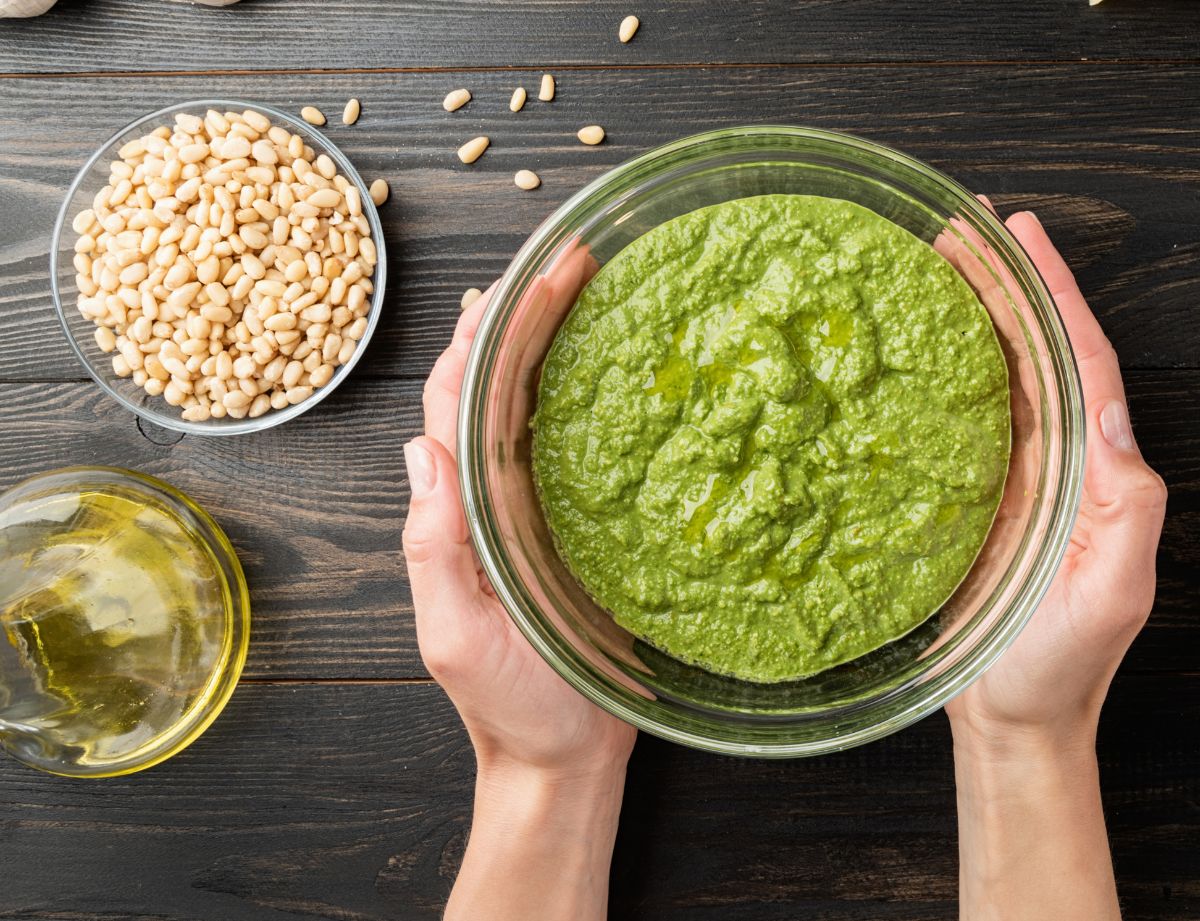 - Utilizar ingredientes de calidad: Para que nuestro pesto sea una salsa de calidad es importante que nuestros ingredientes también lo sean. Utiliza piñones frescos, hojas de albahaca pequeñas y un aceite de oliva virgen extra de buena calidad.