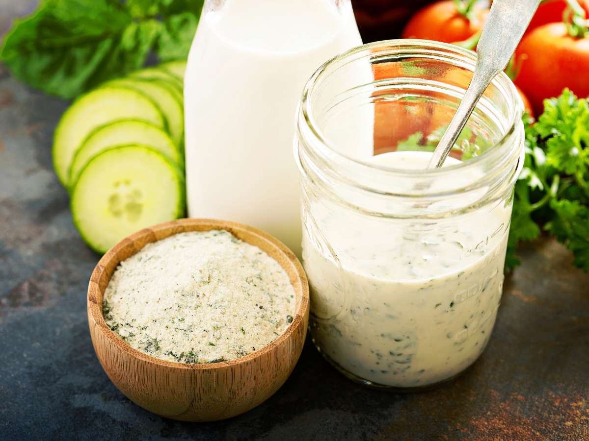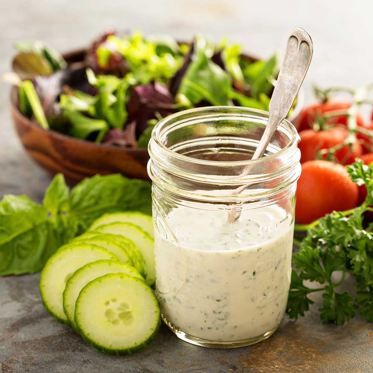 Si vas a utilizar el Aderezo Ranch para la ensalada te recomendamos que lo aligeres un poco, para lo que puedes utilizar 1 o 2 cucharadas de suero de leche. Si no lo tienes a mano y quieres hacerlo en casa mezcla por ejemplo ½ taza de leche entera + ½ cucharada de zumo de limón. Luego agrega una o dos cucharadas de este suero de leche a la salsa ranchera para aligerarla.