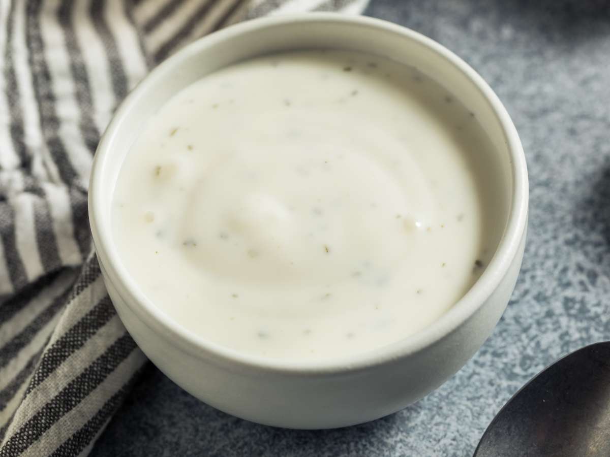 - Si la salsa te queda muy espesa, puedes ajustar la consistencia añadiendo un poco de suero de leche (para hacer suero de leche casero, mezcla por ejemplo ½ taza de leche entera + ½ cucharada de zumo de limón)