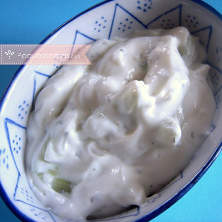 - Salsa de yogur o Tzatziki griego para las brochetas de carne