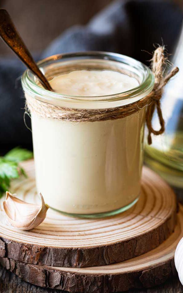 Ingredientes: 2 dientes de ajo; 1 huevo; 200 ml de aceite de oliva; 1 cucharada de jugo de limón; sal al gusto.