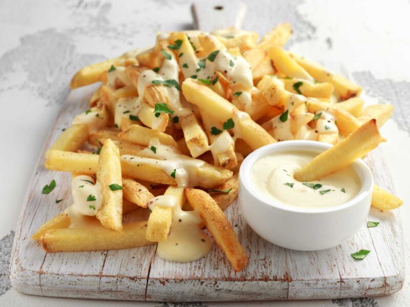 Patatas fritas con mayonesa de mostaza