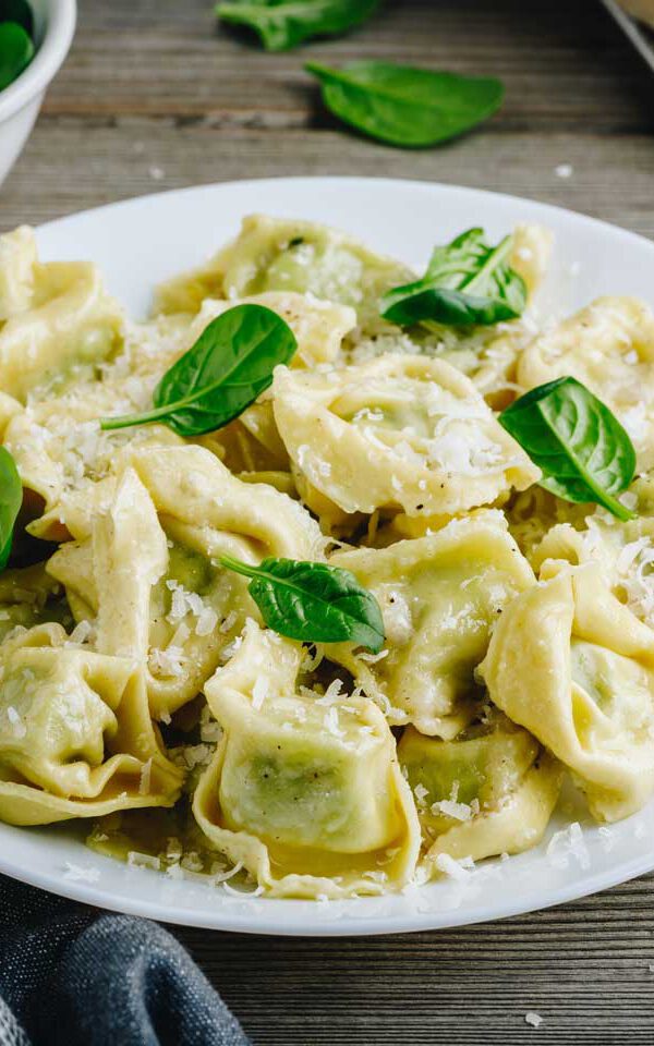 Sobre todo si rellenáis los tortellini con queso ricotta y espinacas, esta salsa de mantequilla y salvia es el condimento perfecto para exaltar su sabor.