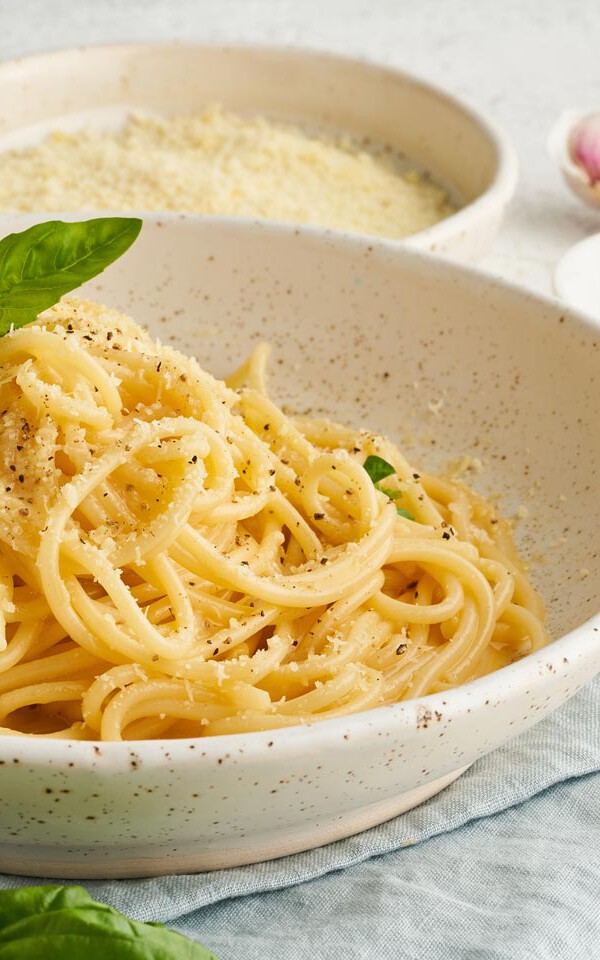 Decoramos con queso parmesano rallado y un poco más de albahaca fresca picada.