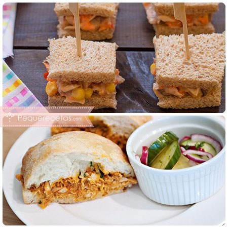 Ver las recetas de mini sándwich de pollo y sándwich de pollo con salsa barbacoa.