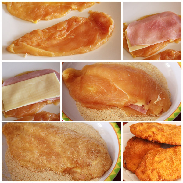 Cómo hacer San Jacobo de pollo empanado con jamón y queso