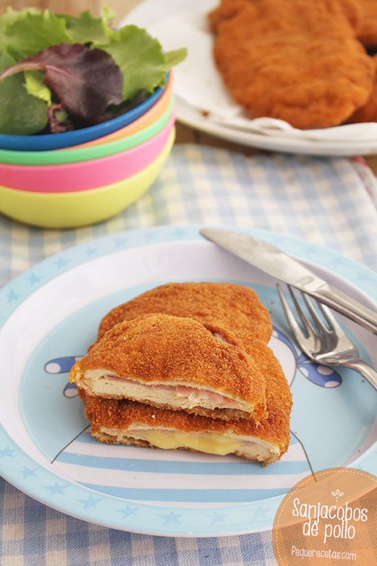 Hoy os animamos a hacer unos San Jacobos de Pollo, unos filetes de pollo empanados rellenos de jamón y queso, y una receta ante la que ningún peque se resiste.