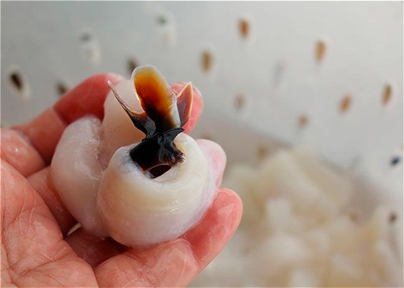 - Ponemos la sepia debajo del grifo, eliminamos todos los restos del interior y retiramos la piel.
