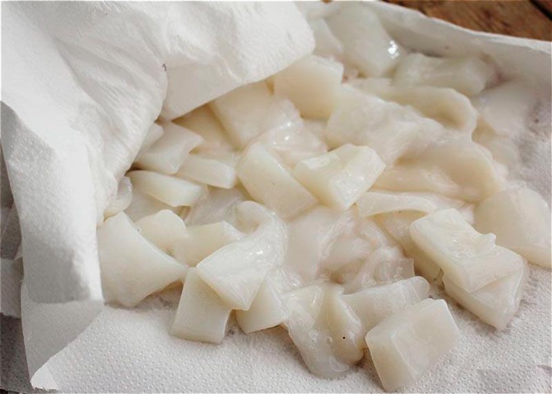 - Una vez limpia la sepia, que podéis encontrar ya limpia, escurrimos y secamos muy bien.