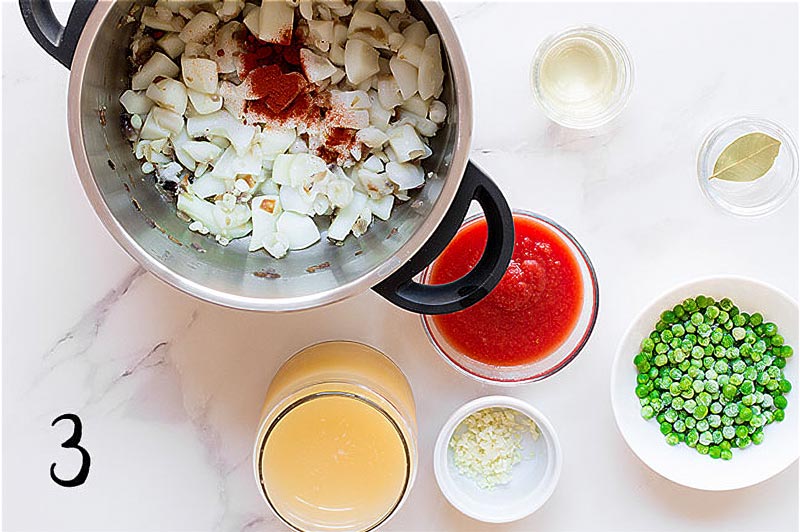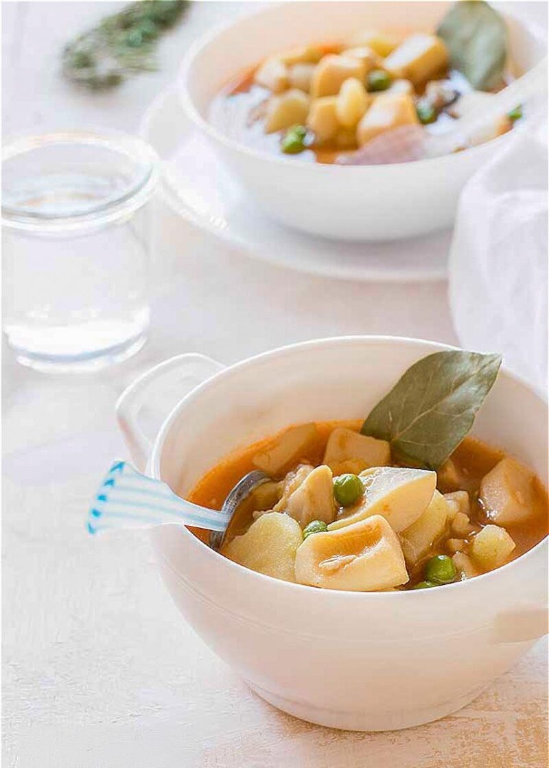 - Si usas guisantes congelados o frescos añádelos al mismo tiempo que las patatas. Si usas guisantes de lata añádelos cuando al guiso le queden unos 10 minutos.