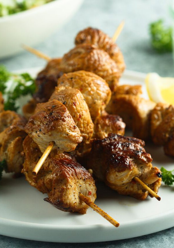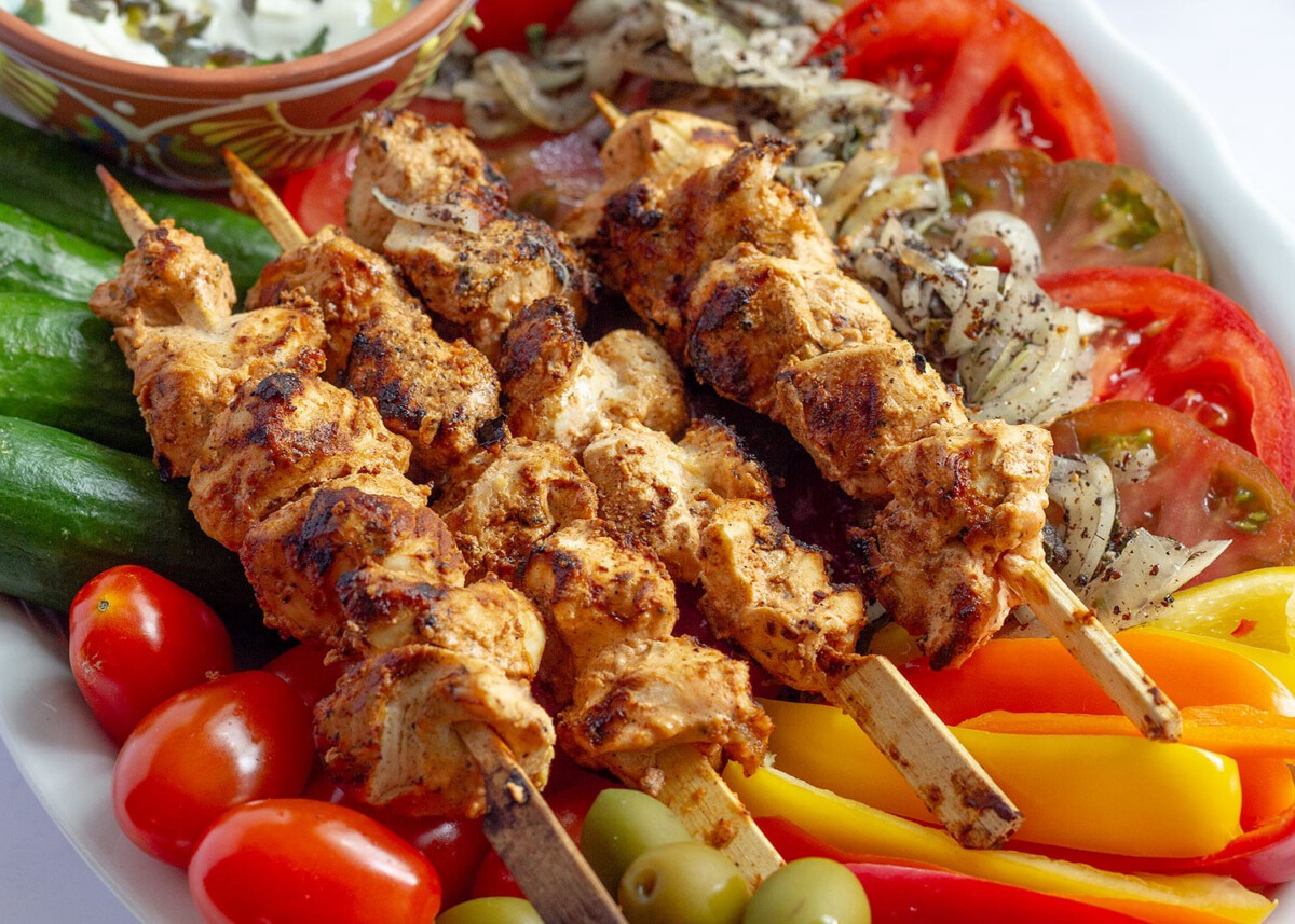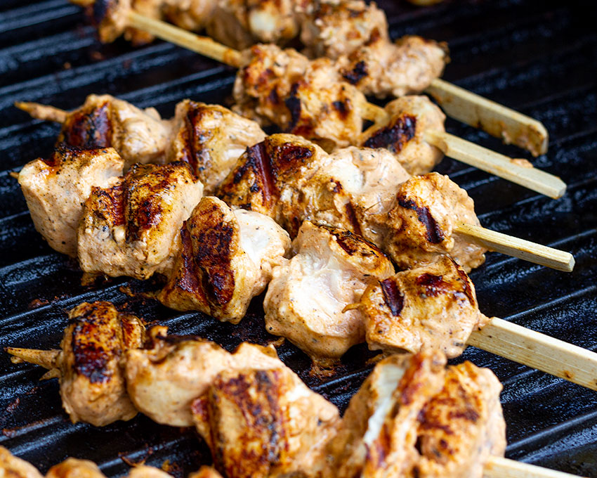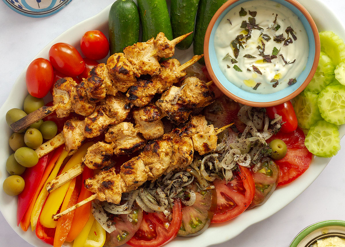 Estas brochetas de pollo marinado en yogurt, ajo, zumo de limón y especias, llamadas Shish Taouk, son uno de los platos más populares del Medio Oriente.