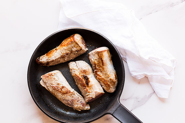 - Con dos solomillos de cerdo partidos por la mitad es suficiente para cuatro personas.