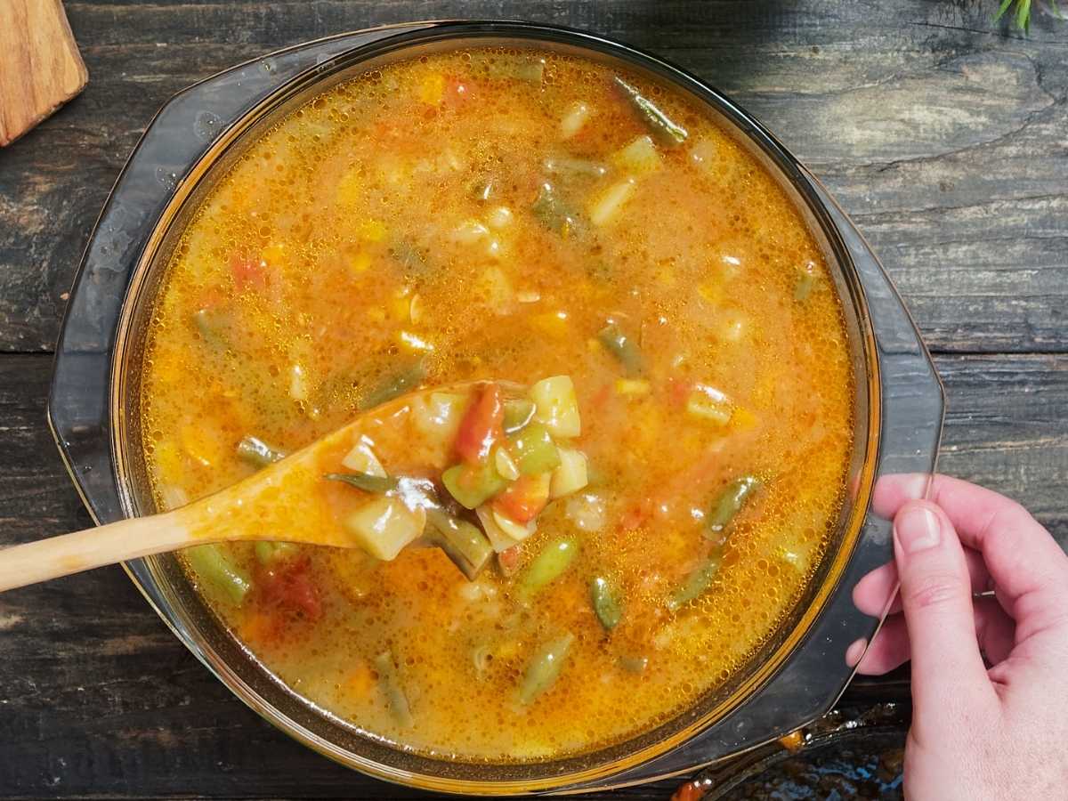 - Reduce el fuego y deja que la sopa hierva a fuego lento durante unos 20 minutos, o hasta que las verduras estén tiernas.