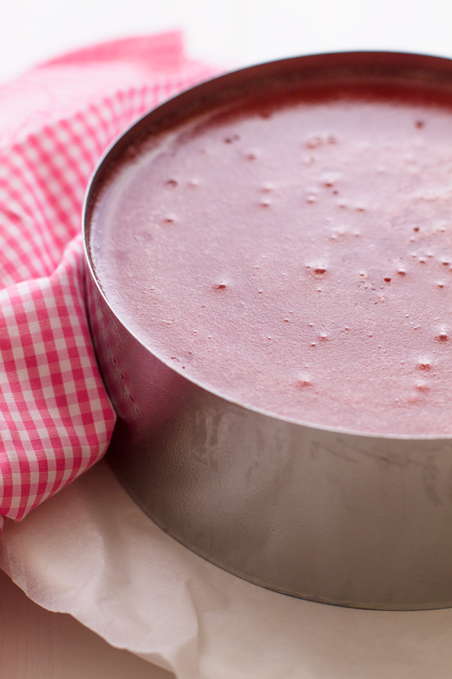 Al día siguiente pasamos un cuchillo alrededor del aro y desmoldamos la tarta tirando del aro hacia arriba suavemente.