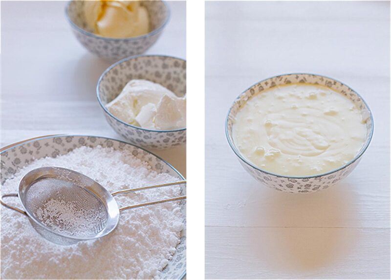 - Preparamos los ingredientes del frosting de queso.