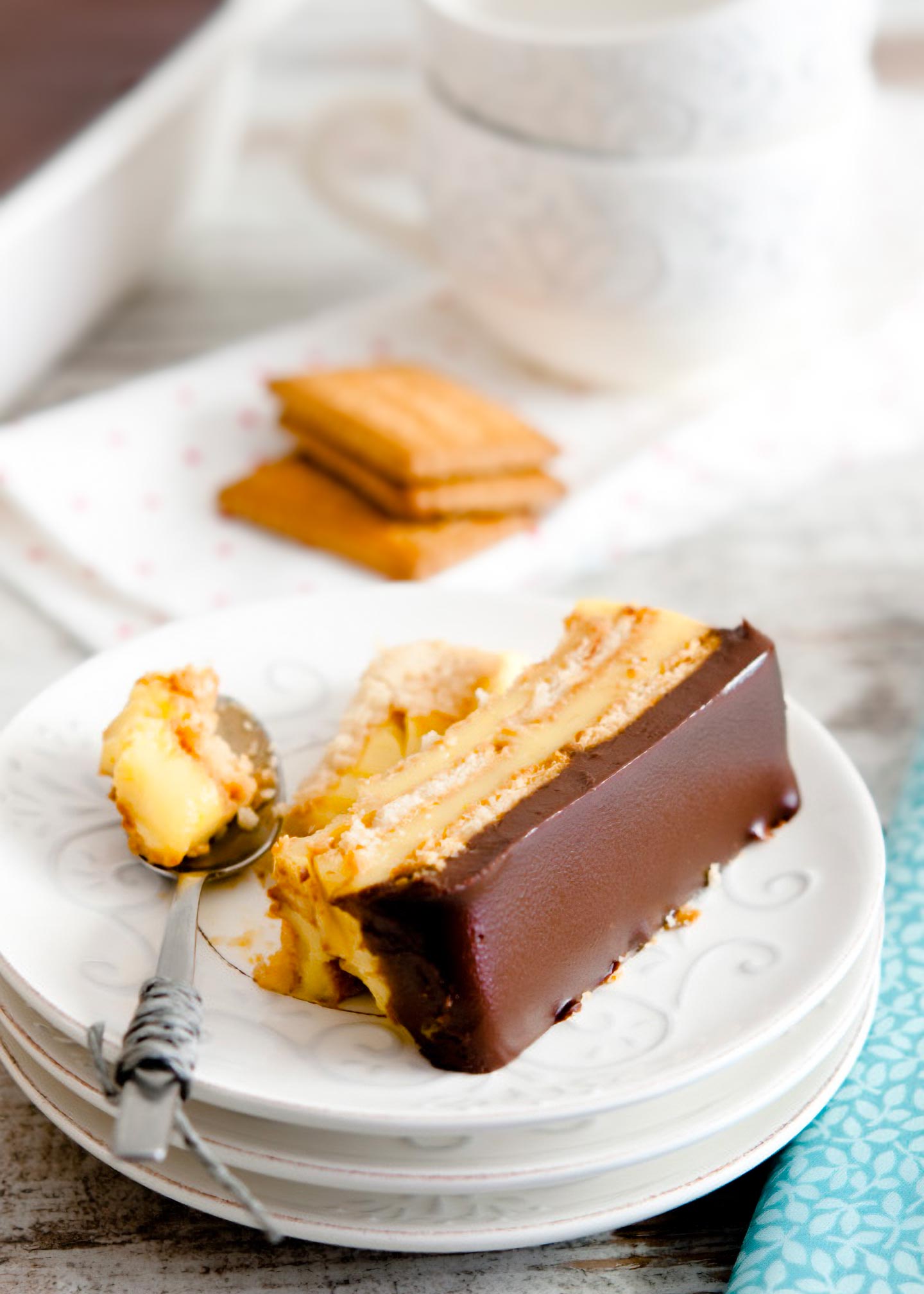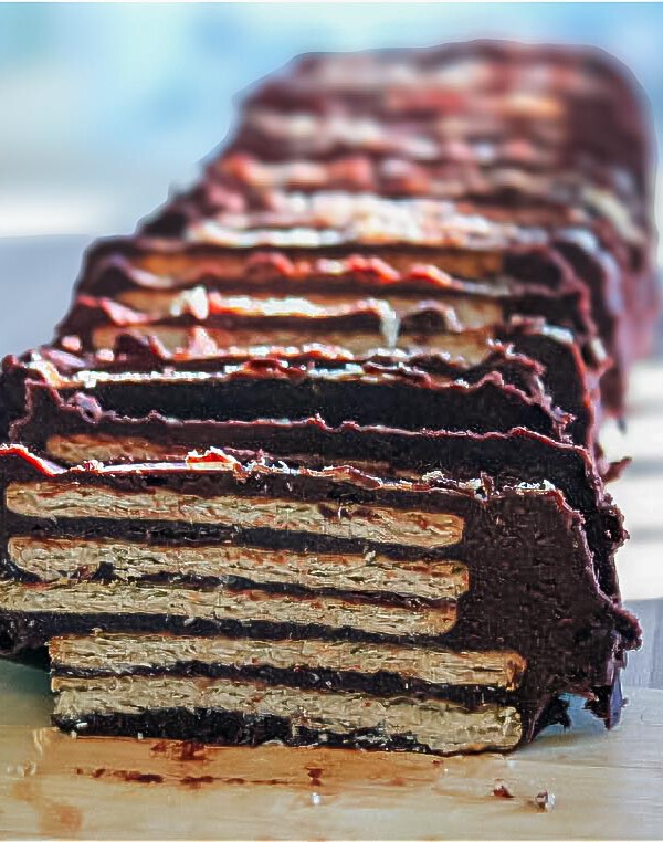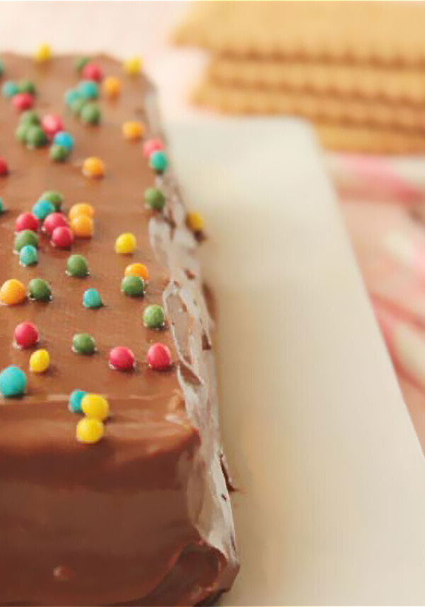 Receta de tarta de galletas, flan y chocolate