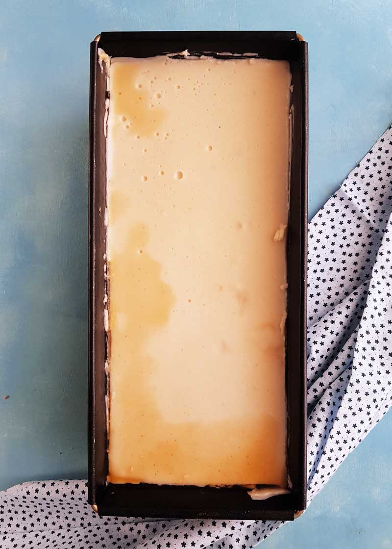 - Llevamos a la nevera tapado el molde durante al menos 3 horas hasta que esté completamente cuajado (mejor si es de un día para otro).