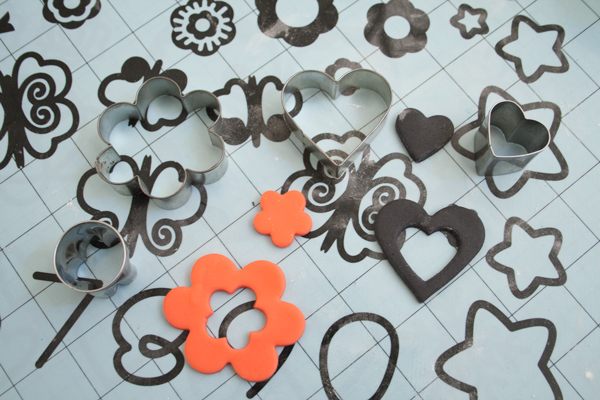 - Lo que he hecho es coger cortantes de flores y de corazones de dos tamaños diferentes. Por ejemplo corté una flor grande y en el centro una pequeña, de manera que la grande me quede calada y la pequeña también me sirva para la decoración.
