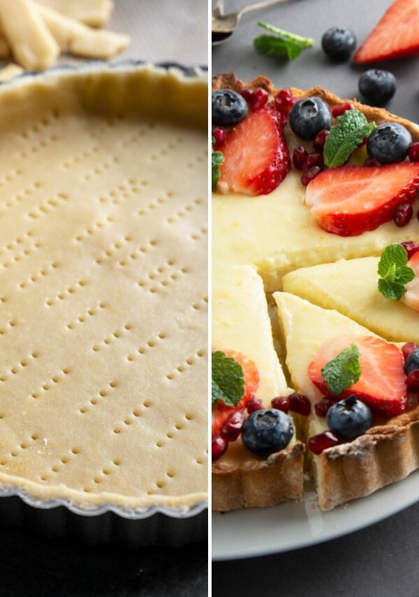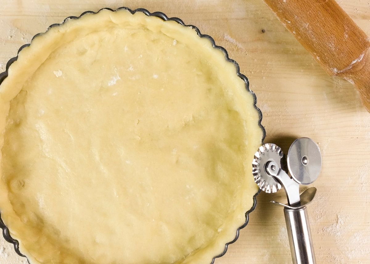- Rellenamos el molde de la tarta con esta masa cubriendo bien los bordes y dejando un sobrante de entre 3 y 6 mm.