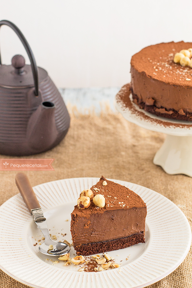 Esta tarta de chocolate y avellanas con flan y nata te va a encantar: puro chocolate y textura untuosa, una tarta con la que tendrás el éxito asegurado. Me recuerda muchísimo a la tarta de Nutella aunque en el primer caso no se hornea y en esta tarta sí hay horno, además de que varían los ingredientes, ya que aquí se utiliza crema de queso y en esta tarta usamos flan y nata. Te aseguro que quien la prueba le gusta y te pide que vuelvas a prepararla pronto.
