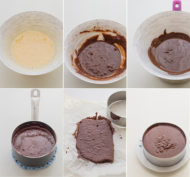 Hacemos la masa de chocolate con flan, nata y avellanas