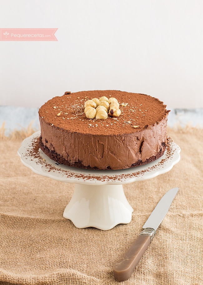 La receta la vimos hace tiempo en el blog de Susana de Webos Fritos, quien la bautizó con el nombre de Tarta Stradivarius por la decoración que le puso, pero nosotros nos vamos a remitir a la receta original de la crema de chocolate del Recetario Canecositas sin decoración, por lo que no la bautizaremos y la dejamos como tarta de chocolate y avellanas, que son los dos ingredientes más destacados de la receta. Si queréis ver otra versión de esta misma tarta os recomendamos esta tarta de chocolate con Thermomix que también publicamos hace tiempo.