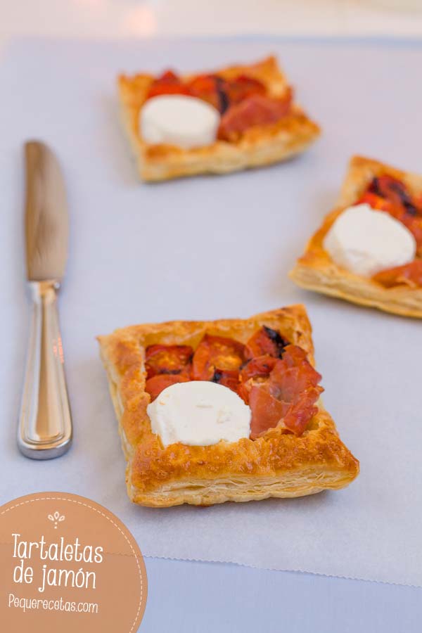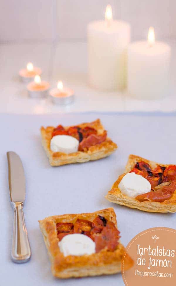 Estas tartaletas de hojaldre de jamón y queso de cabra, es un aperitivo que es toda una exquisitez y sorprenderá a nuestros invitados.